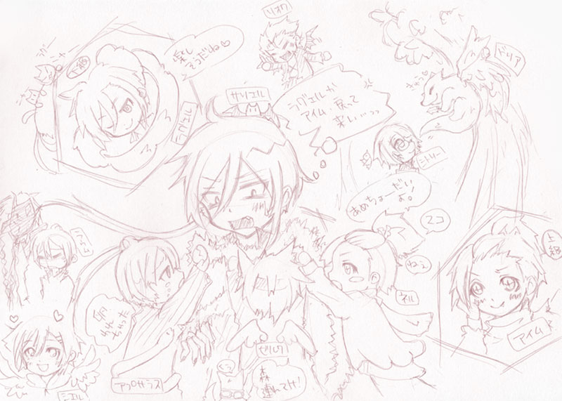 サリエル、アプサラス、ゼルク、ネルだけ描くつもりでしたがあれよあれよ増えていき、一応、症候群シリーズの全キャラを。